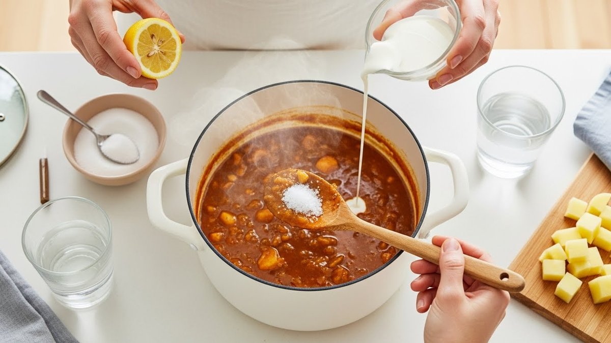 そのため水で薄めるときは、少しずつ加えて様子を見ながら行い、足した分の風味を補うためにスパイスや香味野菜を少量足すとよいです。水だけでごまかすのではなく、別の調整手段と組み合わせるとバランスが取れます。