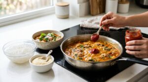 濃い味を直す場面では、味を足すより、味を分散させるという発想が大切です。調味料の追加は最後の微調整にとどめたほうがまとまりやすくなります。