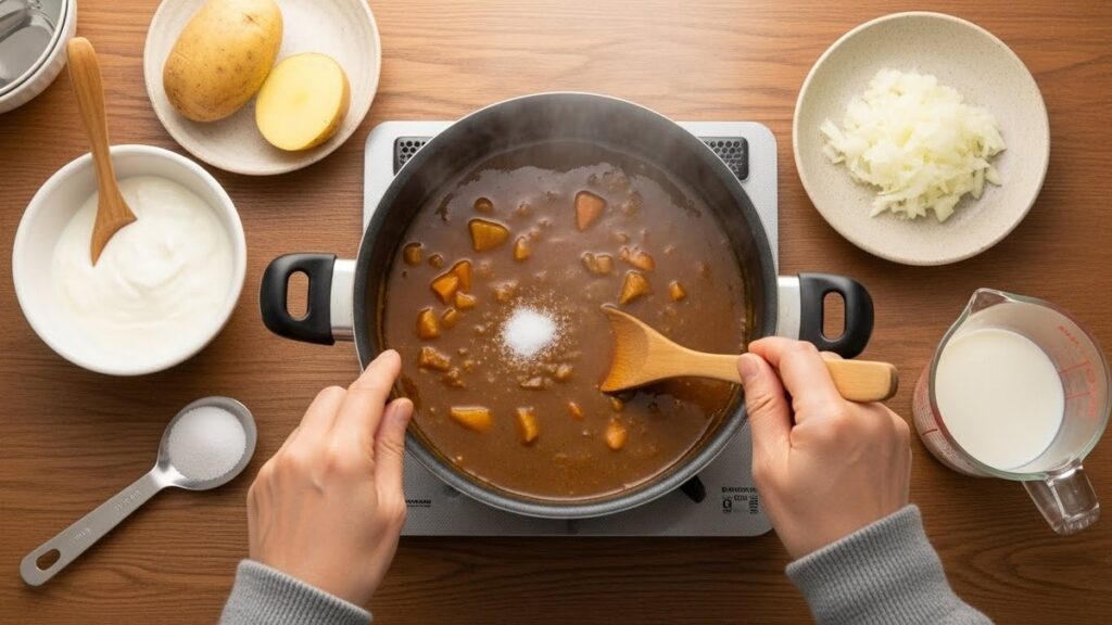 カレーがしょっぱくなったときに試したい即効テクを紹介します。水や乳製品でまろやかにする方法やじゃがいもで塩気を吸わせるコツなどをわかりやすく解説します。失敗しない加減やリメイク案、塩気チェックリストまで今日から使える内容です。