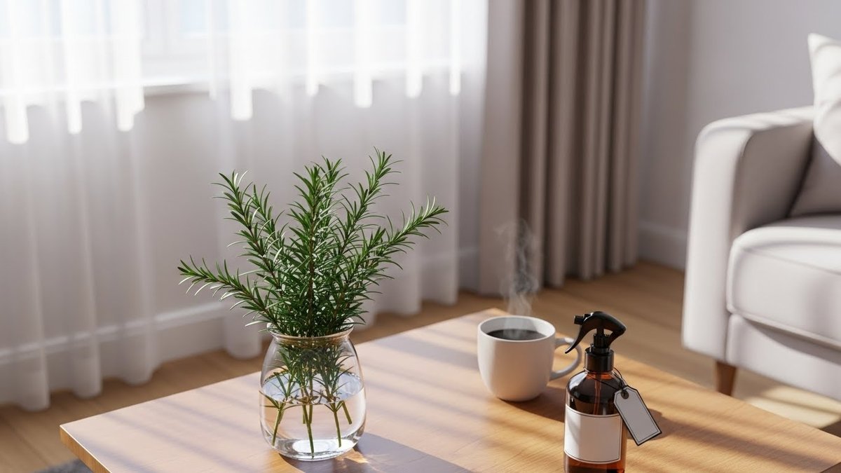 日常的にできる簡単な方法は次の通りです。まず生のローズマリーの小枝を数本切って、コップや小皿に立てて置くだけでOKです。香りが弱まってきたら新しい枝に交換してください。精油があれば水スプレーに数滴混ぜて布や空気にシュッとするだけでも香りが広がります。